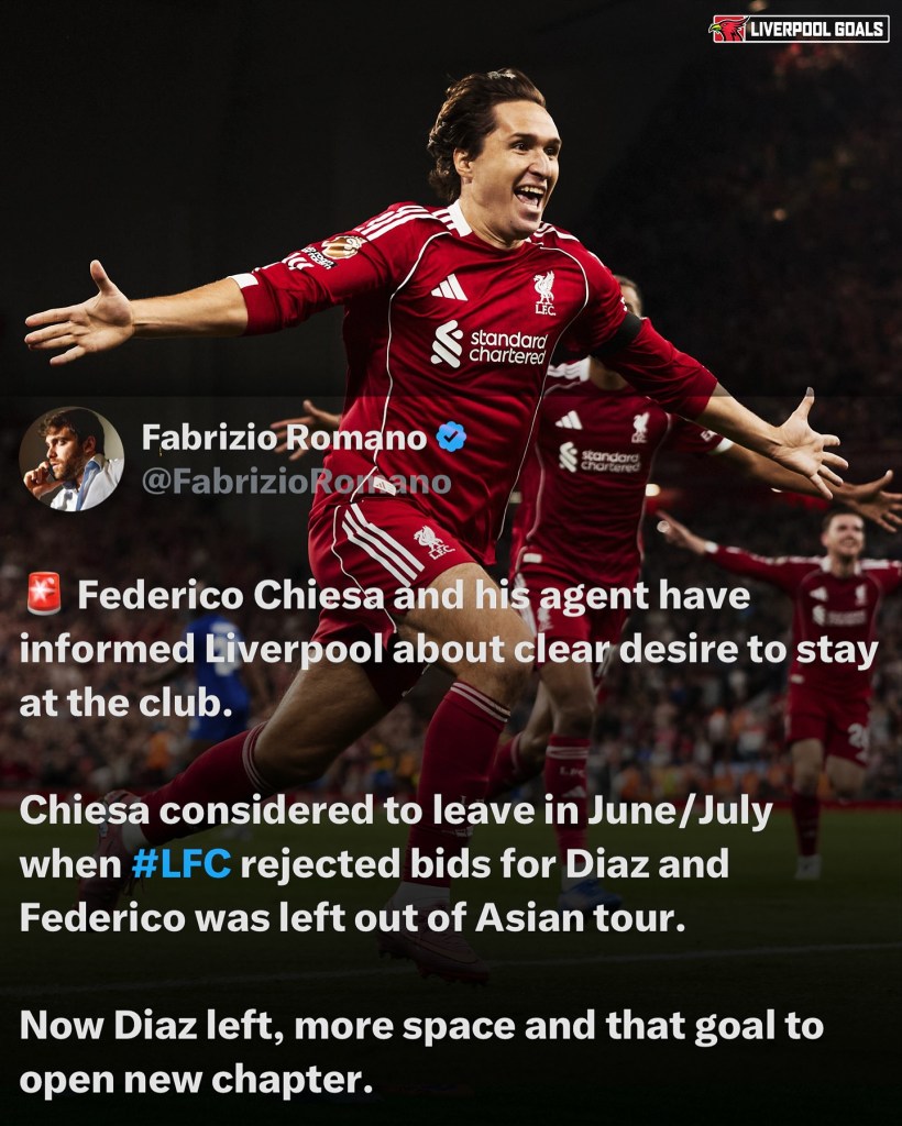 Following the game, I kept an eye on some of the verdicts made by the manager and players. Player of the Match Hugo Ekitike expressed his desire to improve, even though his performance was top notch. He said he wants to be like his idol Karim Benzema, trying to play in a similar style to the former French international. At the end of his interview, he said he hopes to earn more MOTM awards as the season progresses. The coach showed his frustration regarding the abuse incident, saying it’s unacceptable — especially at Anfield. In terms of gameplay, he thought it was a nice match to watch for the fans. Regarding the summer transfers, he told Sky Sports: “We’ve lost many players, but we didn’t lose our mentality.” When asked about conceding goals and losing control, he claimed that the absence of Ryan Gravenberch (serving a ban) and Mac Allister’s late arrival to camp were reasons why the balance was lacking, and that having them back will improve the situation. On the other hand, Chiesa clearly stated in his post-match interview his desire to stay at this football club and continue enjoying working with the coach and his teammates.