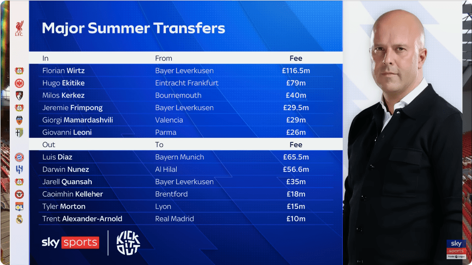 A huge reshuffle in Arne Slot’s side has been remarkable for the way Liverpool Football Club conducts its business in the transfer market. The departures of Trent Alexander-Arnold, Luis Díaz, Darwin Núñez, Kelleher, and Quansah have been key for the club to fund the arrivals of high-caliber players like Florian Wirtz, Hugo Ekitike, Milos Kerkez, Frimpong, and potentially Alexander Isak. An unbelievable window, and super exciting for the fans. Find the figures below for the deals completed as per the source.