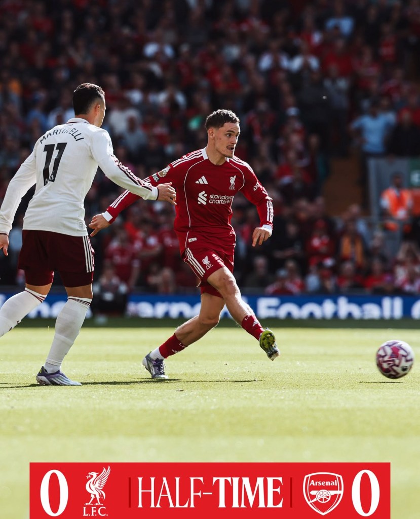 The visitors missed key stars from the starting eleven, the likes of Bukayo Saka and skipper Martin Ødegaard due to injuries, the latter only making the bench. The home side kept the same lineup, with only one change — the return of Alexis Mac Allister replacing Curtis Jones. Anfield lights were ready for such a clash.